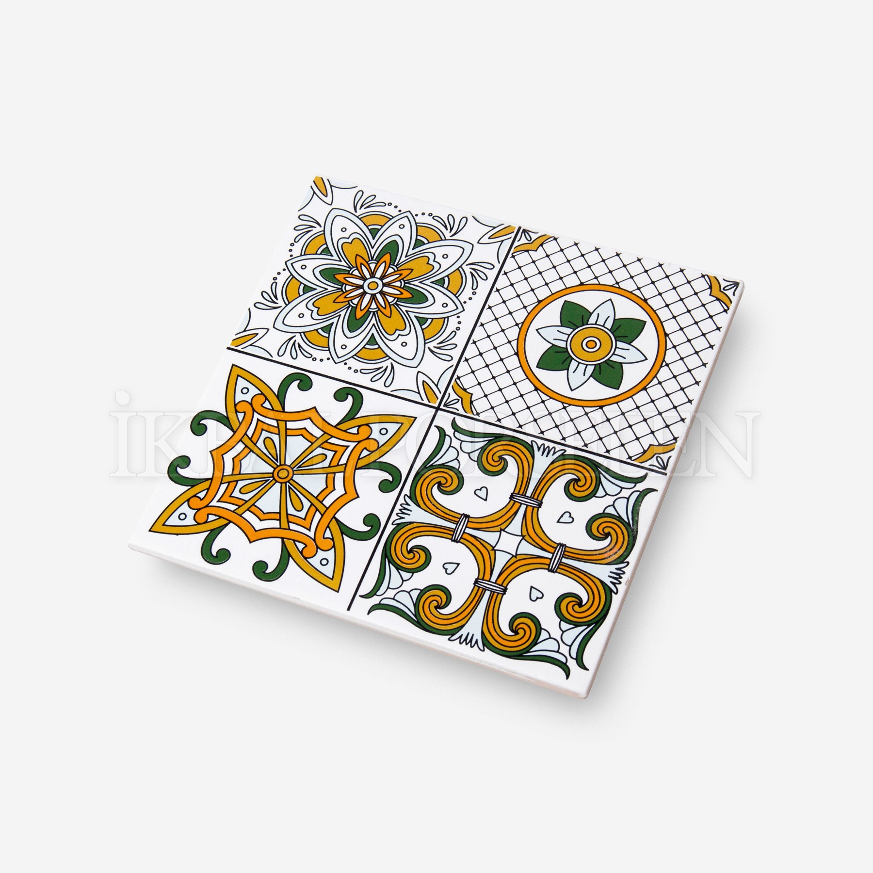 • Üretim Aşamaları : Bu ürün baskı yöntemi kullanılarak üretilmiştir. Ve 20×20 cm porselen karo ilk olarak sırlı, daha sonra dekoratif pişirimde yüksek sıcaklıklarda (1050°C – 1200°C) 2 kez fırınlanmıştır.